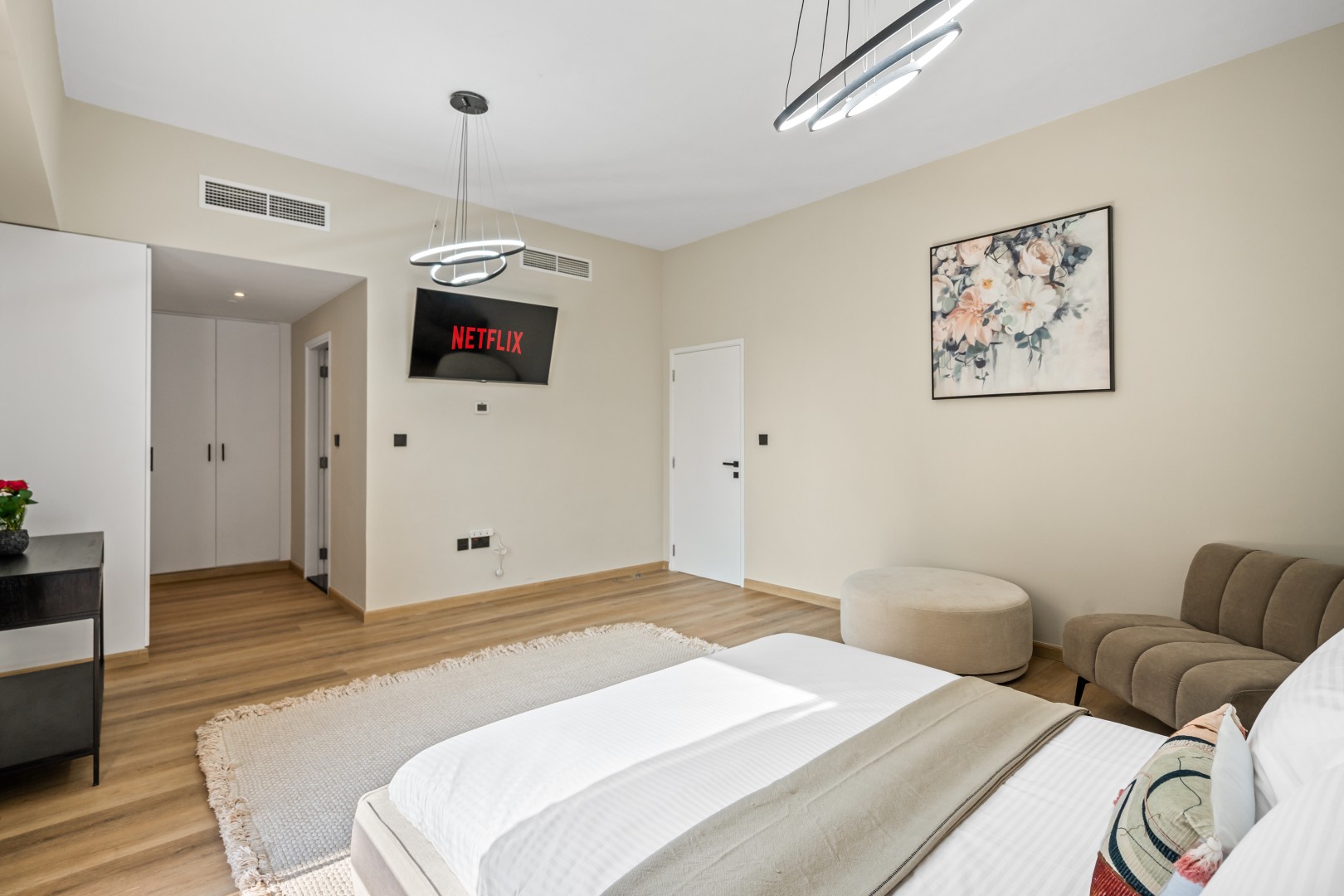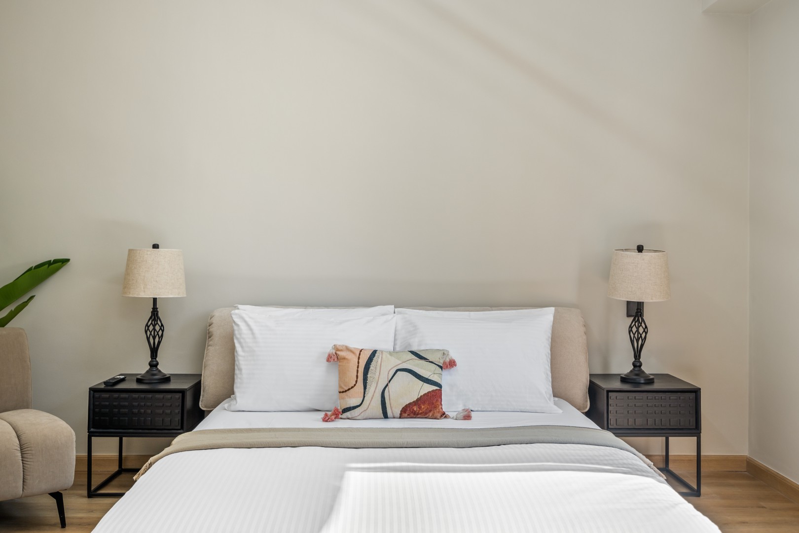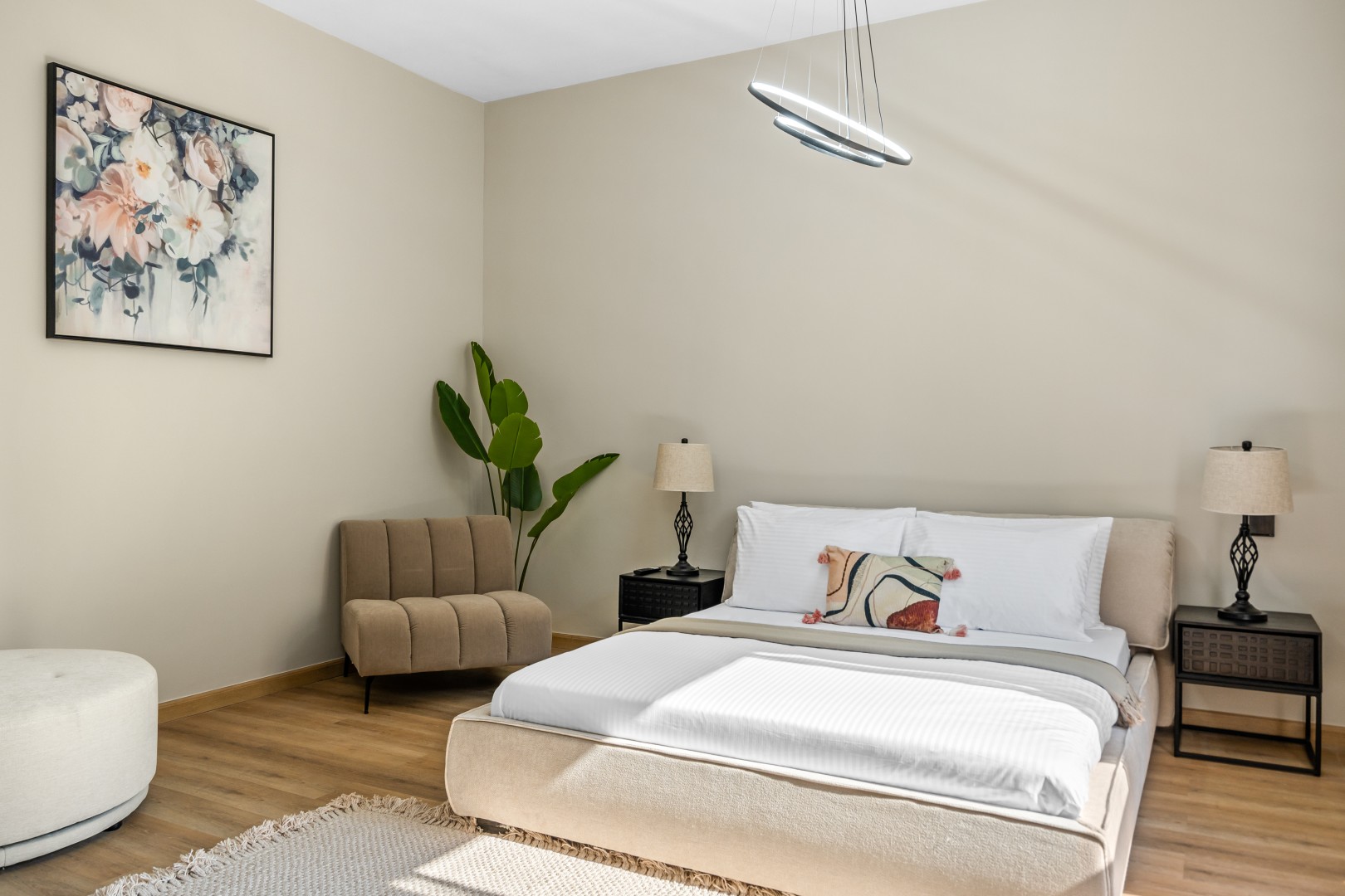 Our apartment is thoughtfully designed to offer both comfort and functionality. It features a cozy living area with a comfortable sofa and a flat-screen smart TV, perfect for relaxation. The bedroom boasts a spacious queen-size bed for a restful night’s sleep. The apartment is equipped with high-speed internet and a washing machine for added convenience. The fully functional kitchen is well-equipped with a complete set of dining utensils, a refrigerator, electric kettle, coffee machine, and stove, providing everything you need to prepare meals during your stay. The dining table comfortably seats four, making it ideal for enjoying meals with family or friends. Guests can take advantage of the building’s fantastic amenities, including a swimming pool and a gymnasium, perfect for unwinding or staying active. Additionally, there is one parking space available for your convenience. Enjoy a seamless, comfortable, and convenient stay in our well-equipped apartment.