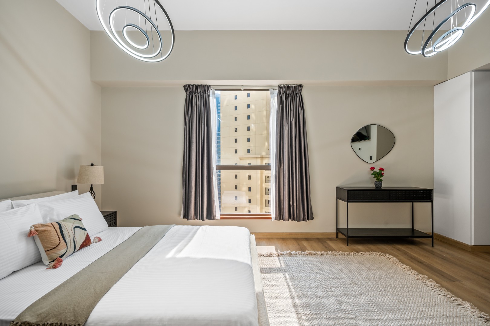 Experience luxury in our newly renovated apartment in Jumeirah Beach Residence 1, within the prestigious Sadaf 7 community. Featuring brand-new furniture and appliances, the apartment offers modern comfort with complimentary onsite parking, fast WiFi, and a smart lock system for easy check-in. With 24/7 reception service and an ideal location near beaches, dining, and shopping, your stay promises convenience and relaxation at its finest.