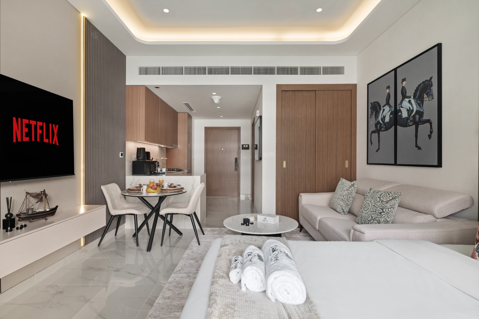 Experience Modern Living in a Brand-New Studio – Just 10 to 15 Minutes from Dubai Mall & Burj Khalifa. Whether you're here for business or leisure, this studio offers everything you need: a fully equipped kitchen, a private balcony with views of the vibrant boulevard, and complimentary WiFi for your convenience.