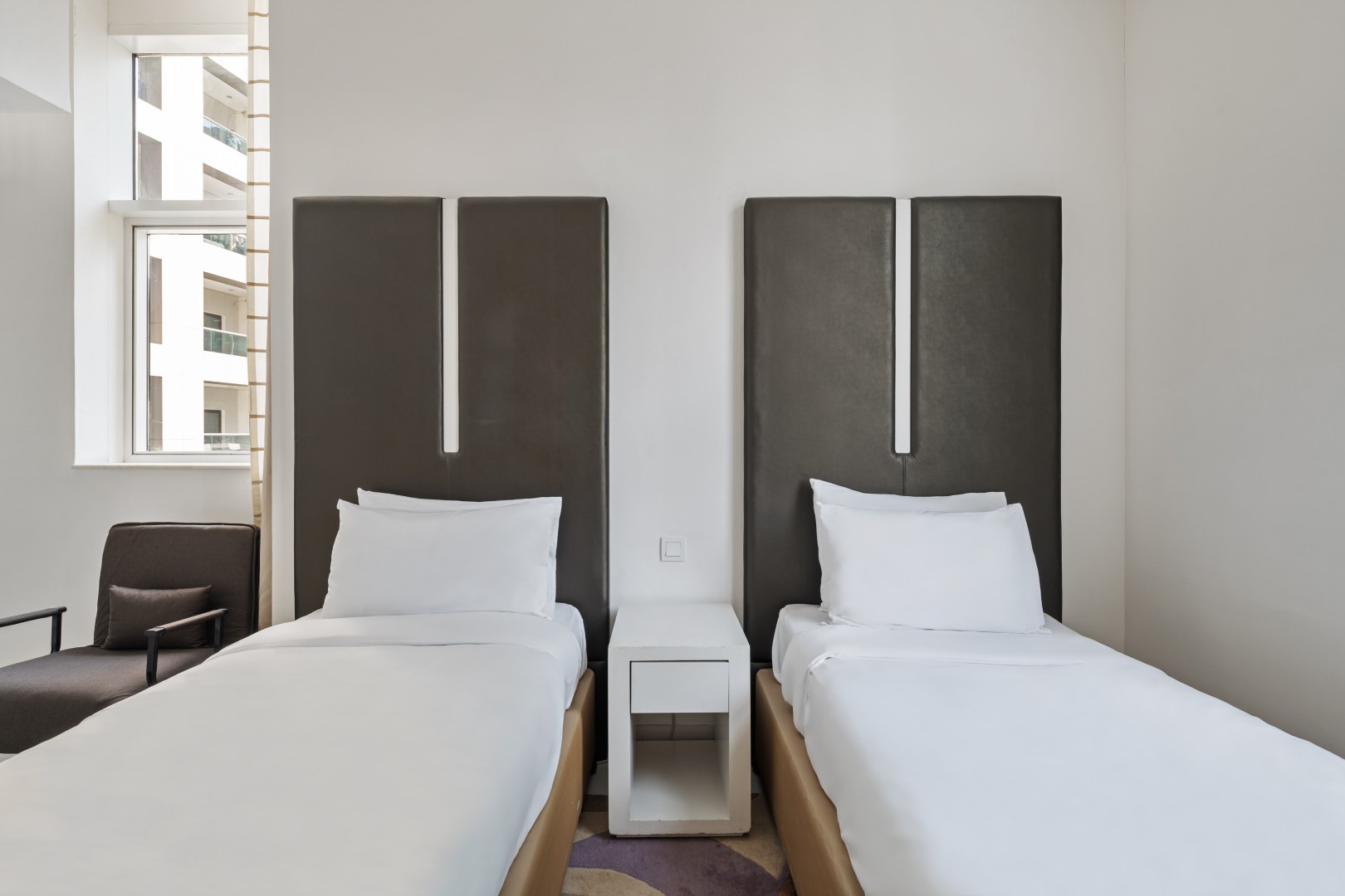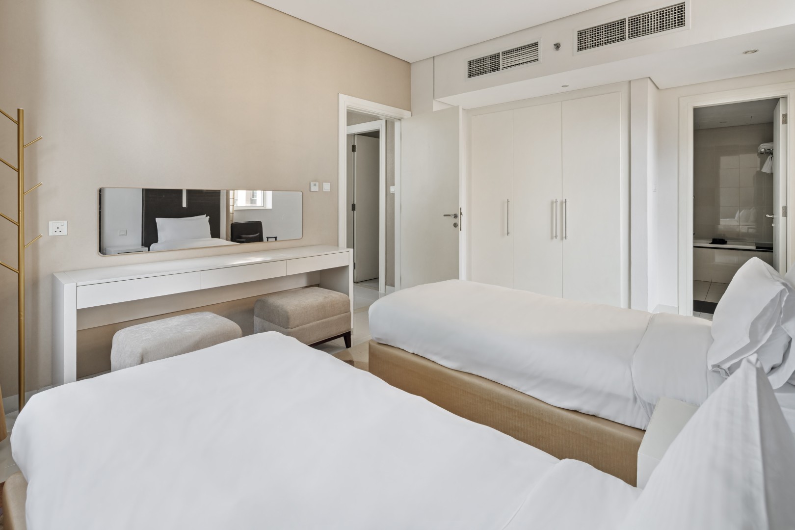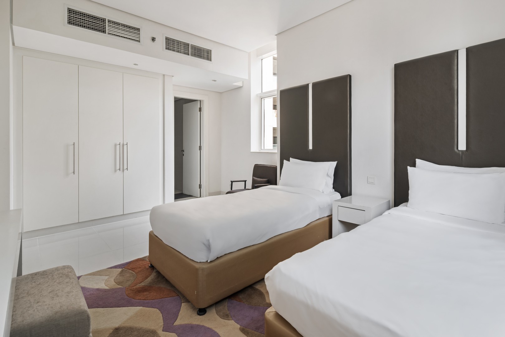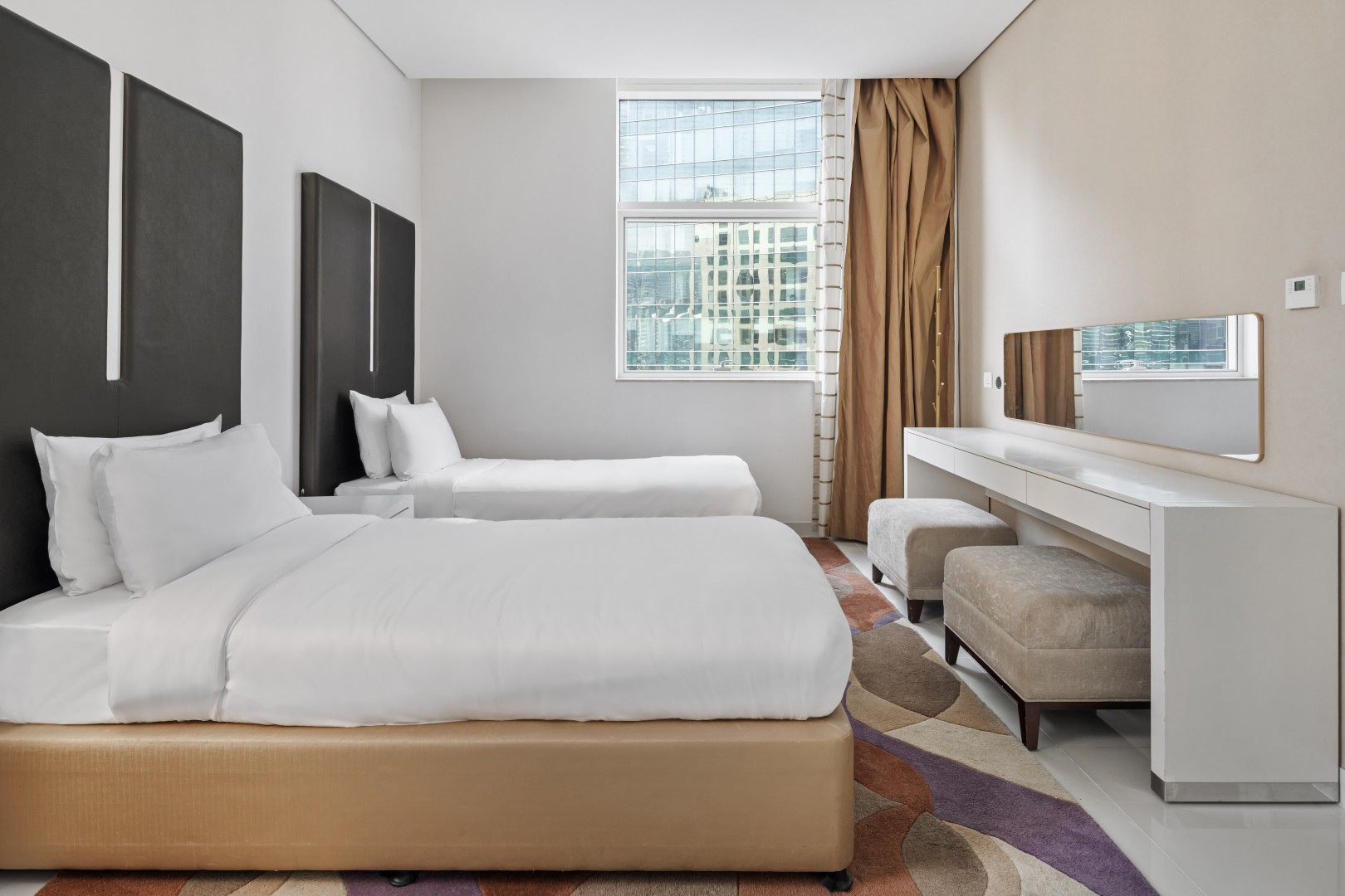 Discover our stylish 2 bedroom in a 5-star luxury building at Damac Cour Jardin, Business Bay, offering a chic and cozy ambiance with a modern kitchen and living space—perfect for a home-away-from-home experience while exploring vibrant Dubai. Your health and safety are our top priority. We provide an enhanced deep sanitization process after every check-out, in addition to regular cleaning, at no extra cost. This luxury accommodation is ideal for tourists, business travelers, contractors, and holidaymakers, offering amenities such as: - Free WiFi - 24/7 concierge service - Complimentary drinks, tea, and coffee - Free parking slot - Free access to the fitness gym and swimming pool