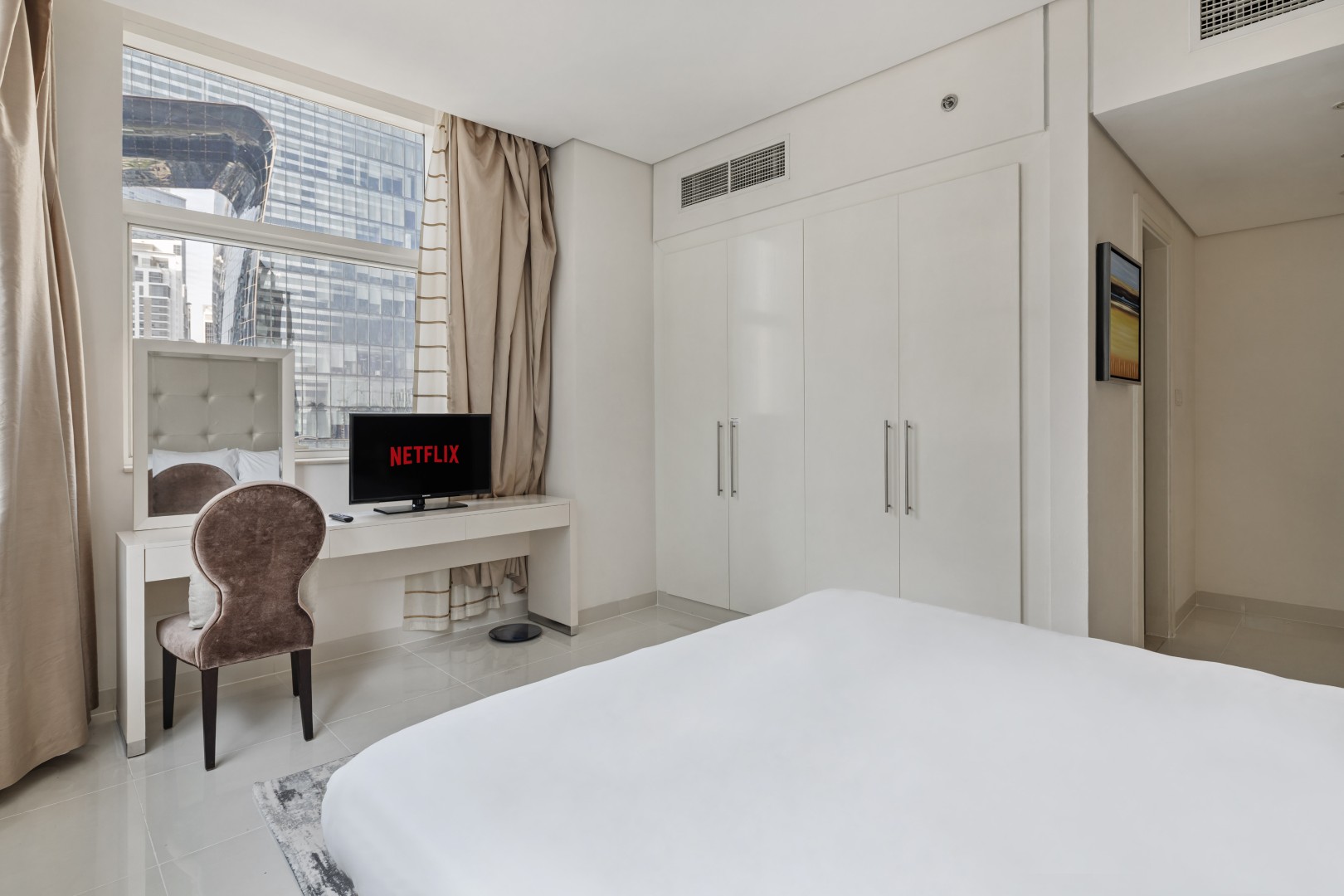 Step into luxury with our newly renovated apartment, featuring brand-new furniture and appliances. Located in the heart of Downtown Business Bay, within a prestigious building, this apartment offers free onsite parking and lightning-fast WiFi. With 24/7 reception and a convenient smart lock system, you can check in at your preferred time with ease. Enjoy the perfect blend of comfort, style, and convenience for an elevated stay.