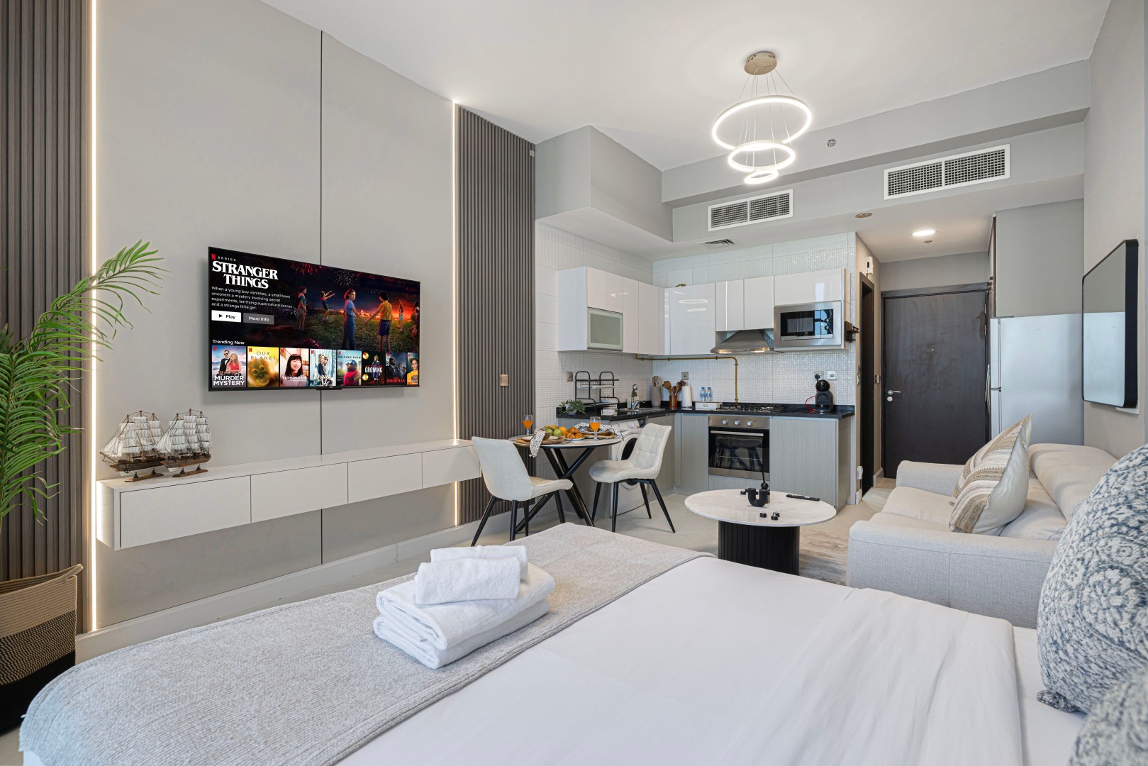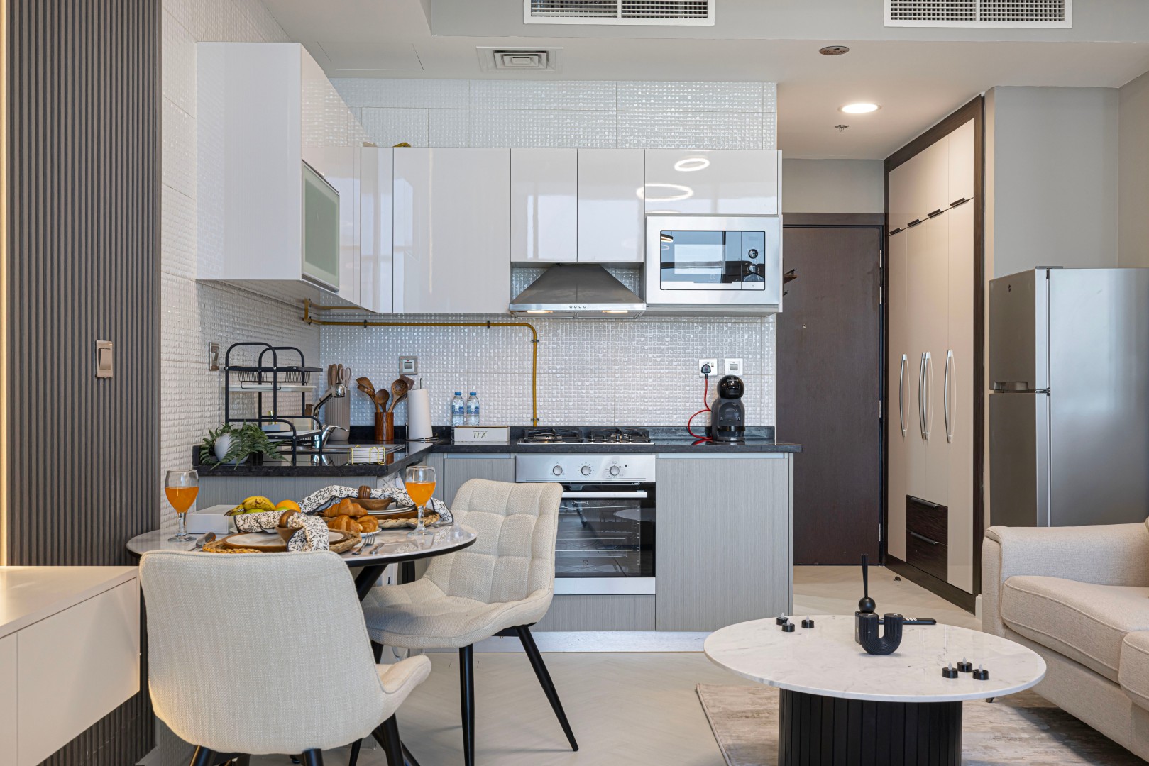 Discover our stylish studio in a 5-star luxury building at Bayz Tower by Danube, offering a chic and cozy ambiance with a modern kitchen and living space—perfect for a home-away-from-home experience while exploring vibrant Dubai. Your health and safety are our top priority. We provide an enhanced deep sanitization process after every check-out, in addition to regular cleaning, at no extra cost. This luxury accommodation is ideal for tourists, business travelers, contractors, and holidaymakers, offering amenities such as: - Free WiFi - 24/7 concierge service - Complimentary drinks, tea, and coffee - Free parking slot - Free access to the fitness gym and swimming pool